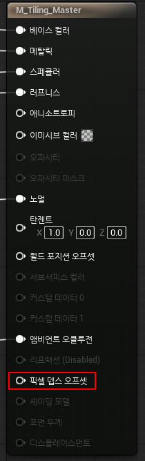 2. "픽셀 뎁스 오프셋"의 연결을 끊는다.