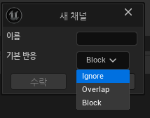 1. 프로젝트 세팅 → 엔진 - 콜리전 → 새 트레이스 채널
