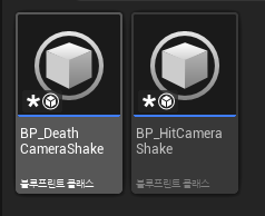 카메라 셰이크 수치 조절은 에디터에서 하는 것이 편리하니 블루프린트 클래스를 만든다.