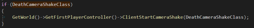카메라 셰이크는 플레이어 컨트롤러에 있는 ClientStartCameraShake()를 통해 적용할 수 있다.