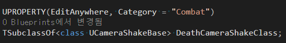 상위 클래스인 UCameraShakeBase로 설정해준다.
