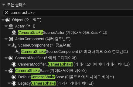 언리얼 엔진은 카메라 셰이크 관련 기능을 별도의 클래스로 지원하고 있다.