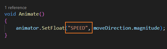 애니메이션 컨트롤러에 SPEED라는 변수를 만들면 거기에다가 moveDirection의 크기를 넣어준다는 뜻