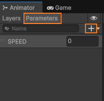 파라미터 이름은 PlayerMovement 스크립트에서 작성한 이름과 완전히 일치해야 한다.