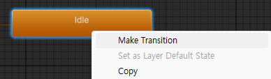 Idle을 클릭하고 우클릭 - Make Transition 클릭