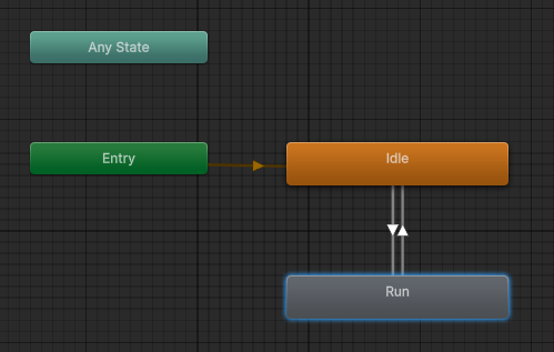 마찬가지로 Run에서 우클릭해서 Make Transition을 통해 Idle을 연결한다.