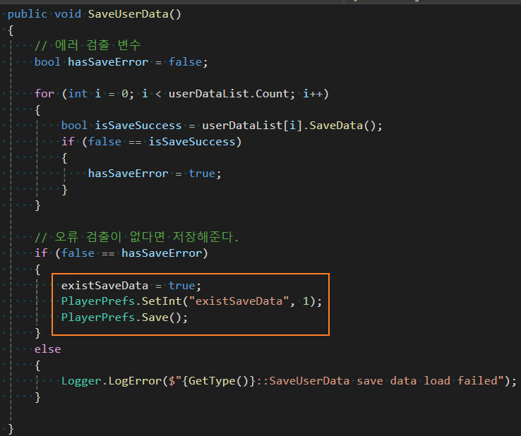 false일 때, Save를 한번 해주는 함수를 호출하고, 여기서 true로 저장을 한 번 해주게되면, 그 다음부터는 영구적으로 true가 된다.