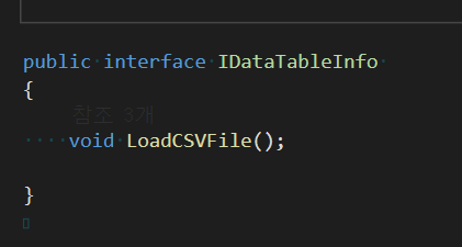 해당 타입은 인터페이스인 IDataTableInfo이다. 그러면, IDataTableInfo를 상속받은 클래스만 생성하면 앞으로는 게임 실행 시 해당 클래스가 파싱한 csv 데이터가 자동으로 등록된다.