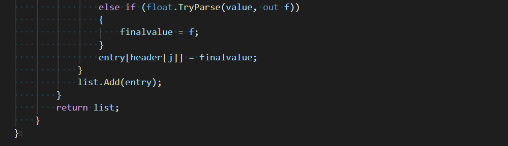 Load 함수는 csv 파일을 파싱하는 CSV Reader 클래스의 Read 함수를 호출하는데, 내용은 아래와 같다.