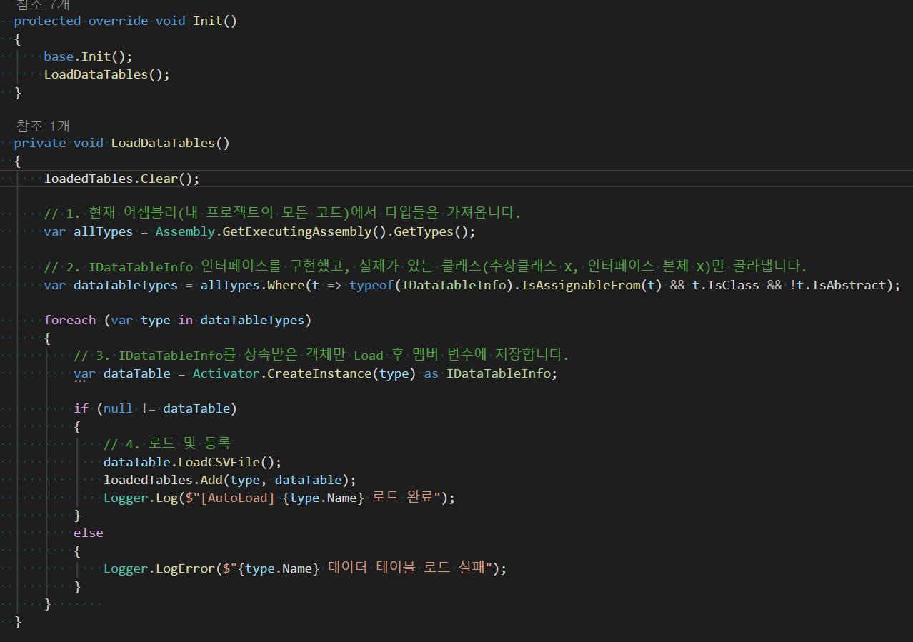 에디터에서 일일이 IDataTableInfo를 상속한 스크립트를 매니저클래스에 등록하는 것이 아니라, 게임 실행하면 알아서 등록되게 처리한다.