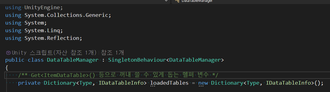 2. C#의 리플렉션을 통해 IDataTableInfo를 상속받은 객체만 자동으로 추려서 저장하기 위함