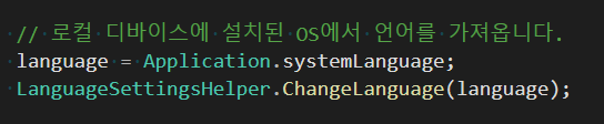 언어를 변환하기 위해서는 현지 코드가 필요한데, 이걸 SystemLanguage와 매핑시켜주기 위해 Dictionary를 사용합니다.