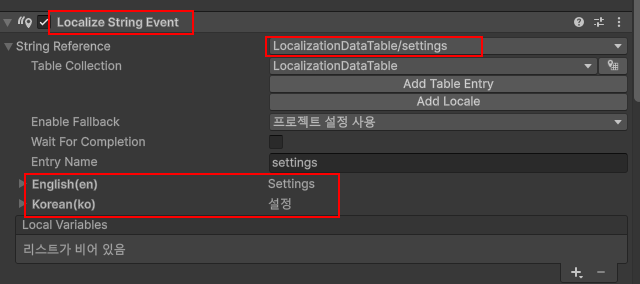 아까 생성했던 Localization Table 이름을 기억해야 하는 이유입니다.