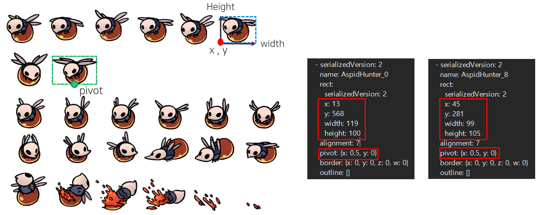 프로그램은 이미지 한 장만 로드하고, 인덱스로 구분하여 해당 위치의 리소스를 화면에 렌더링하는 방식을 사용합니다.