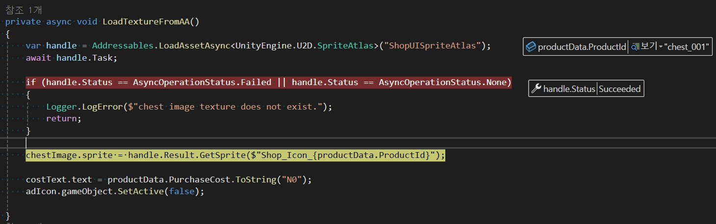 여기서 아틀라스는 Addressables 기준으로 아래처럼 로드합니다.