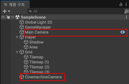 시네머신 카메라를 생성하면 메인 카메라에 아이콘이 추가됩니다.